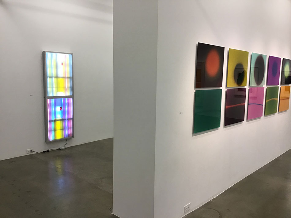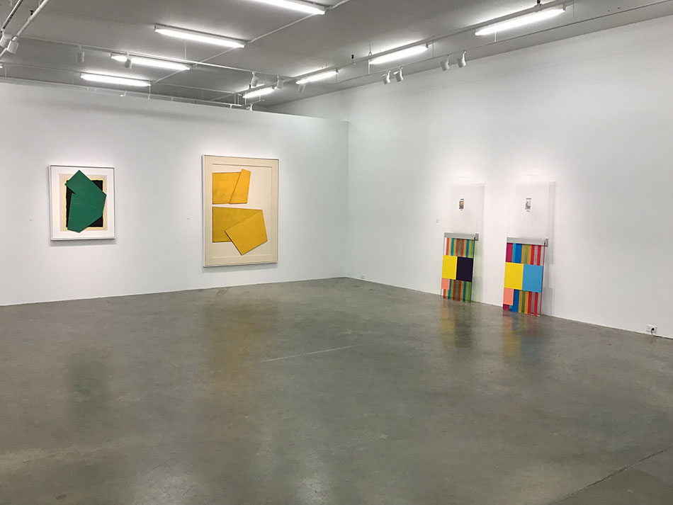 "Restless Geometry" Robert Christie, Laura Dutton, Jonathan Forrest, Robert Youds a four person exhibition organized by Jonathan Forrest for Gallery Jones, Vancouver, BC February 28 - March 30, 2019 Geometry is a strange idea to contemplate. How can something seemingly so rigid lead to freedom? How can a rectangle become personal? How can a line lead to the unknown? How can a circle speak poetry? It's an engaging mystery to me even after all these years. Geometry is an area, a demarcation, a framework, where thoughts can wander, colour can bloom, and accidents can be embraced. And through a material play time in the studio it becomes something tangible and affecting. My colleagues in this show, Robert Christie, Laura Dutton, and Robert Youds, each in their own way, use their voices to engage with structure and process to capture a mercurial bit of magic. Being personally interested in their work, I wanted to see what sort of visual conversation might be sparked when our artwork entered the same room and was installed side by side in the gallery space. What would talk to what and who to whom. After all, we are all artists who, however tenuously, use geometry and colour, but who come from quite different directions and media. I’ve known Robert Christie since the early 1980s, first studying from him at university and then enjoying a longtime dialogue with him through all the years since. I’ve been aware of Robert Youds’ works for decades and since moving to Vancouver Island five years ago I’ve had the opportunity to get to know him personally, adding to my appreciation and understanding of his work. Just as I was a student of Robert Christie, Laura Dutton is a former student of Robert Youds - who introduced me to her work. All a nice bit of symmetry that has come together to produce this exhibition.